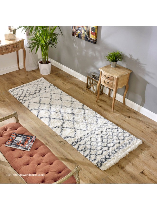 This item is part of the Alto Runners collection, which is a range of modern shaggy runners inspired by traditional Moroccan carpets. Woven from soft polypropylene yarn, the resulting 50mm pile is dense, with a warm and cosy texture. Available in a selection of cream, grey and blue tones, Alto Rugs have geometric patterns inspired by classic ethnic design and colour combinations. Rugs in this collection are a worthy contender to help bring subtle touches of Moroccan flair to your home’s interiors.