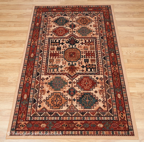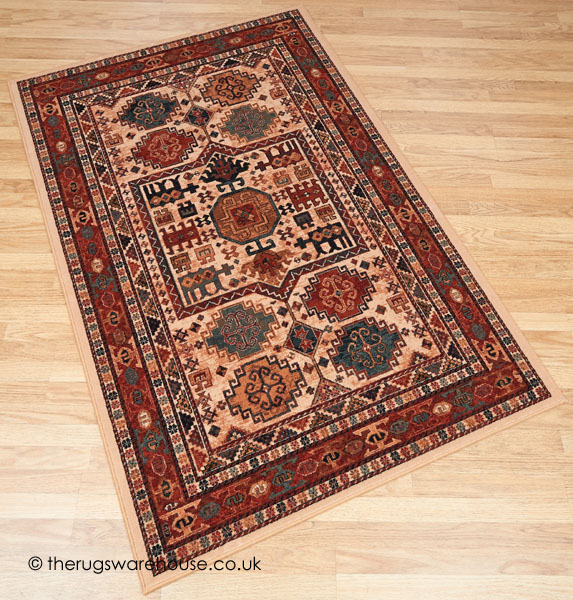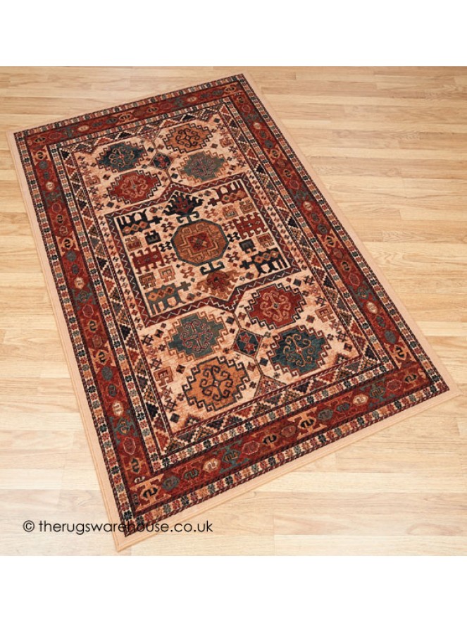 Beige & Light Rust Background Mix with Rust Borders and a Multi-Coloured Design.