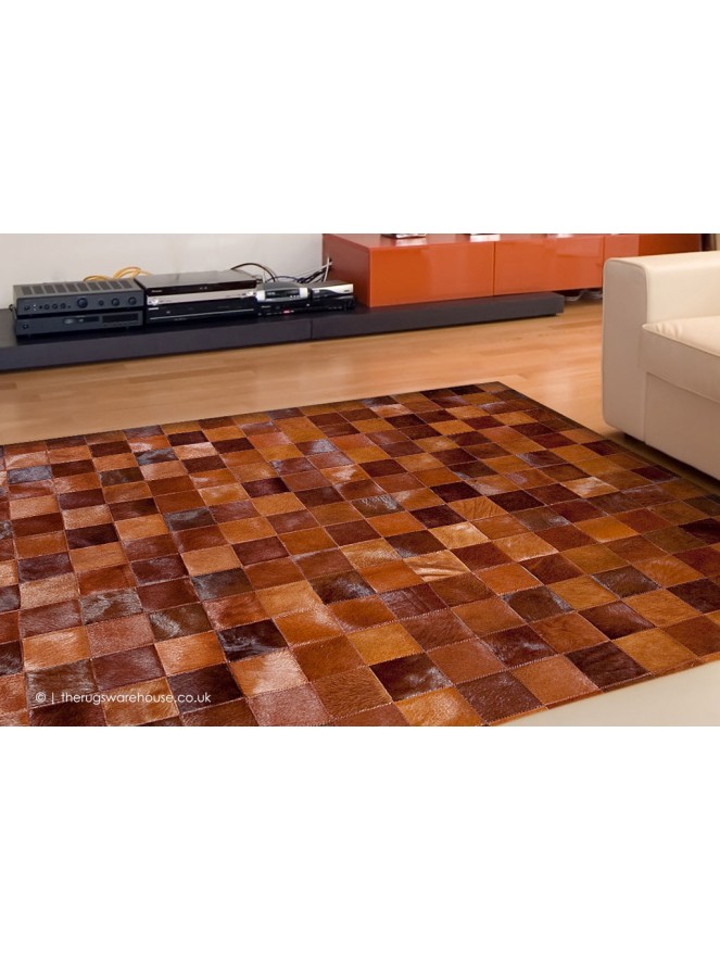 This item is part of the Girona Rugs range, which is a collection of stunning pure European leather carpets. The rugs feature natural leather originating from Normandy and Brittanya, which is truly soft and extremely durable. Designs include the ever popular patchwork, the elegant stripes, and the geometrically inspired, the Girona range designs and colours are unrivalled by any others in their class. In addition to being absolutely crafted to perfection, each rug is finished with a tough underside border, which keeps the rugs even and prevents ripples and rising corners. Please note that the images of this patchwork design show the standard individual squares of 10x10cm, the rugs can also be made using 20x20cm or 30x30cm squares upon request.