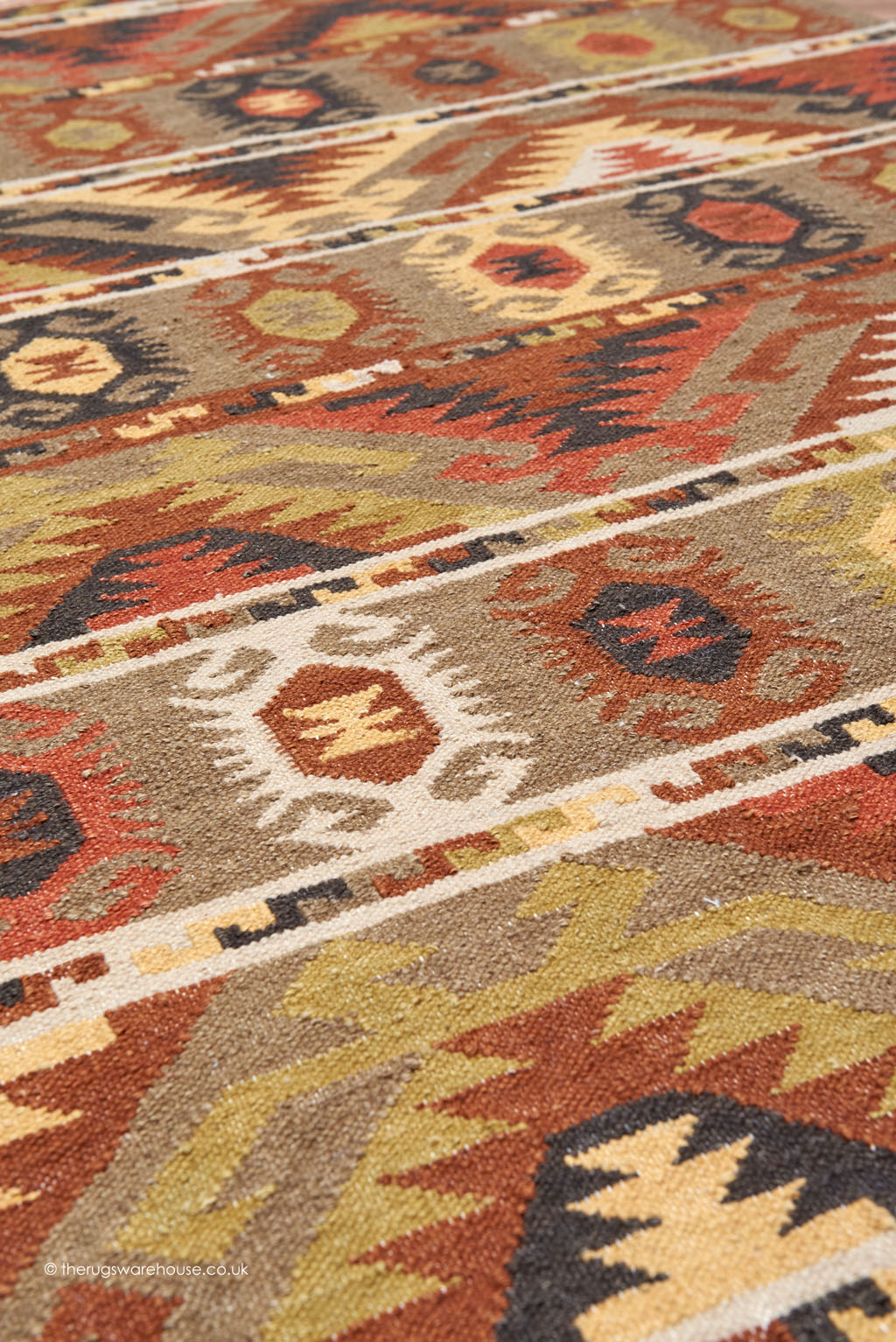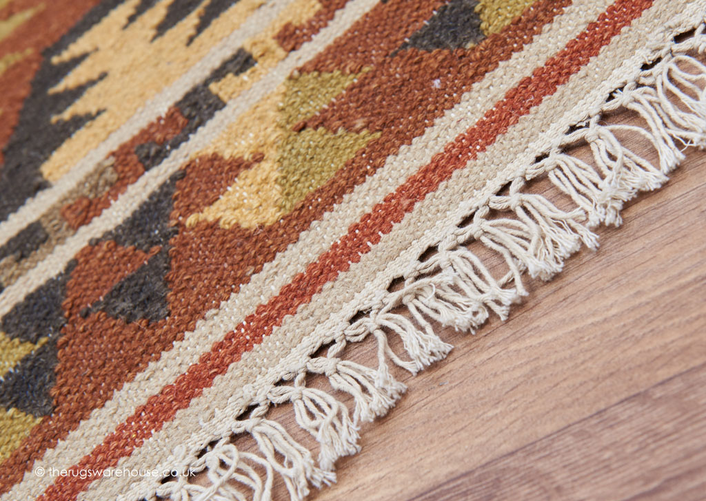 This item is part of the Kelims Rugs collection, which is a range of flat-woven wool tribal carpets. As you might expect from the flat-woven technique of construction, the rugs are very thin kelims, and as they are made of dense wool, they have an authentic and luxurious look. All the rugs in this collection feature antique fringes, which add that extra genuine tribal look. Furthermore, the rugs feature old world tribal designs that never go out of fashion.