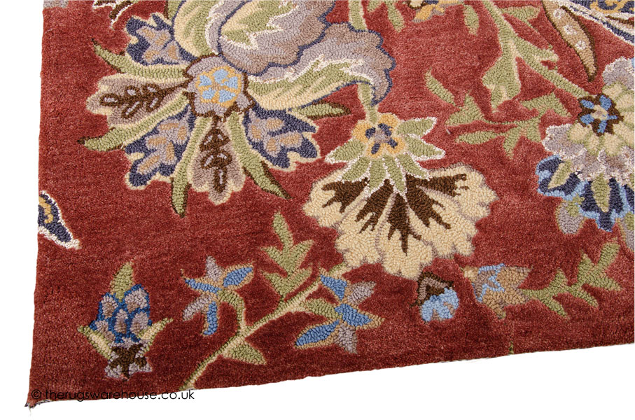 Terracotta Background with Multi-Coloured Design.