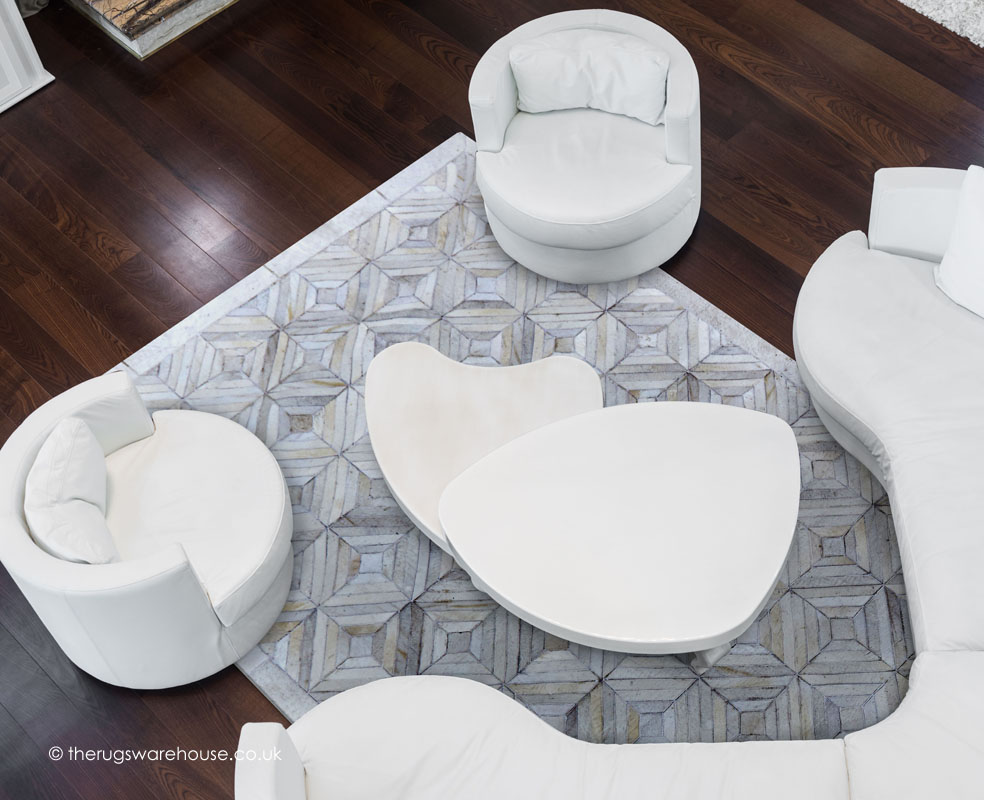 This item is part of the Rodeo Rugs range, which is a collection of luxury leather carpets handmade in India. The rugs are made of natural cow hides, which are naturally soft to the touch and look very luxurious. Rodeo rugs are available in a variety of designs and colours suitable for any room setting.