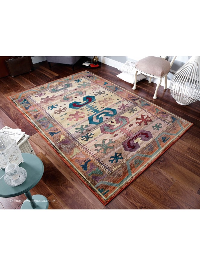 Multi-Coloured with Terracotta as Base Colour.