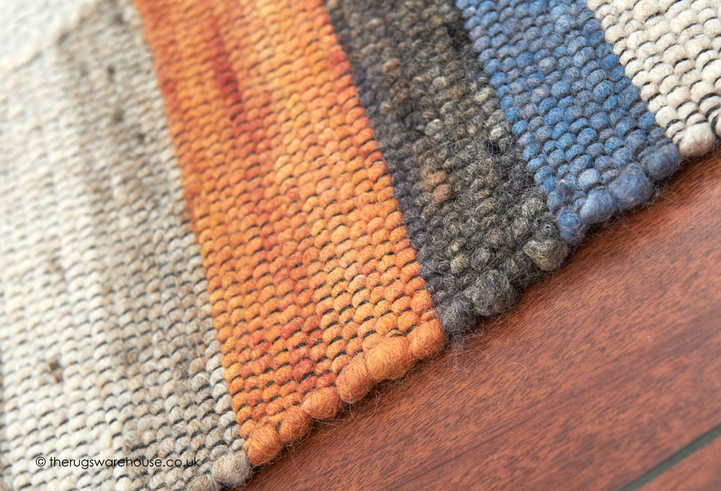 This item is part of the Africa Design Rugs collection, which is a range of flat-woven luxury pure new wool carpets inspired by the earthy colours of the African plains. The rugs, skillfully hand-woven in Morocco, feature a predominantly earthy colour palette that is energised by dashes of colour through use of contrasting stitching, framing, stripes and segmentation design structuring. Such weaving techniques result in reversible pebble like textured carpets that have a pleasing understated chic appearance and a comfortable underfoot feel.