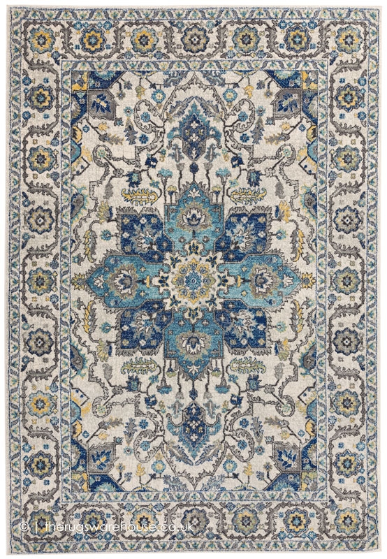 Blue, Cream, Yellow & Grey.