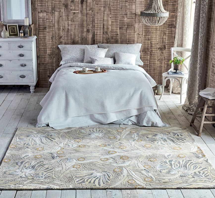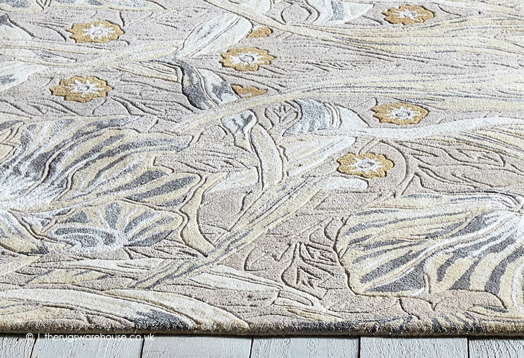 The item is part of the Morris & Co. Rugs collection, which is a range of designer luxury hand-tufted carpets. Posthumously named after the artist and philosopher William Morris, these rugs are recreations of his intricate timeless designs. These rugs are made of pure new wool that will feel soft to the touch and will be comfortable underfoot.