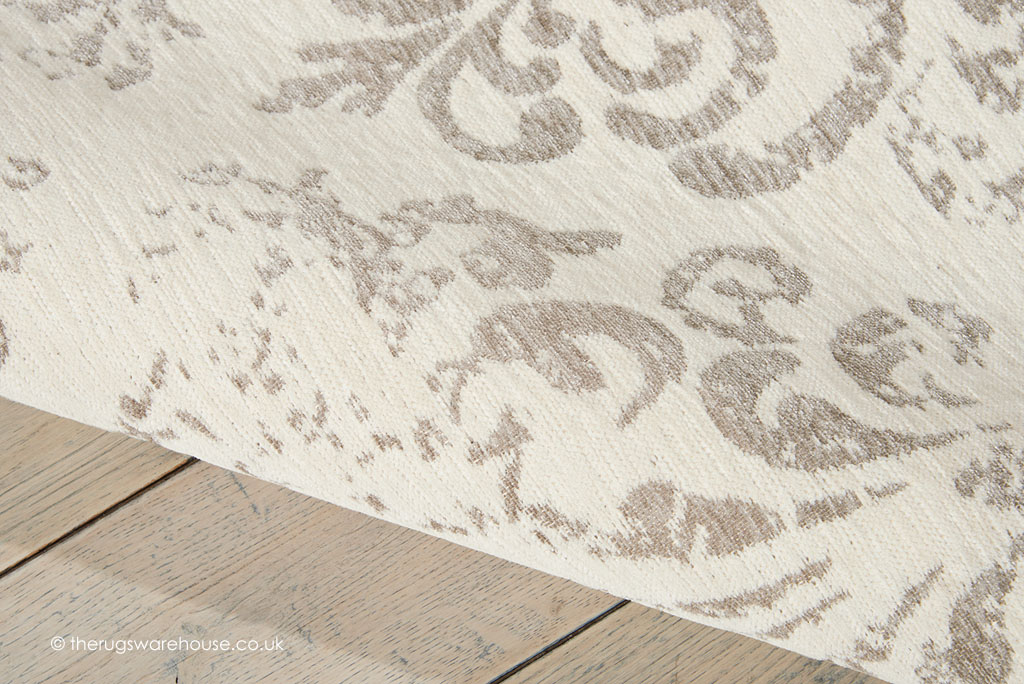 This item is part of the Damask Rugs collection, which is a range of hand-woven polyester chenille carpets. Flat-woven using a blend of polyester, cotton, and rayon, the rugs are very soft to the touch and are highly textured. In addition, the rugs feature elegant damask designs in soft colours, which makes them suitable for any modern setting.