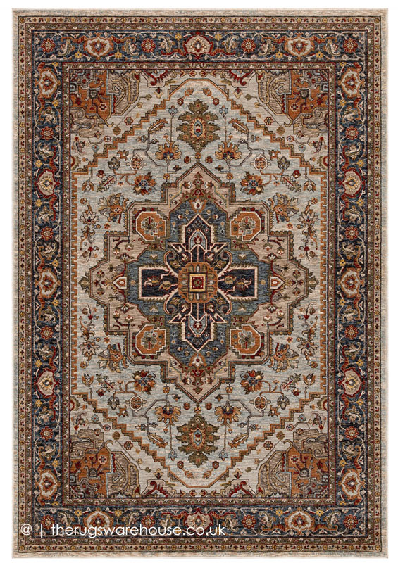 Multi-Coloured with Blue & Beige as Main Colours.