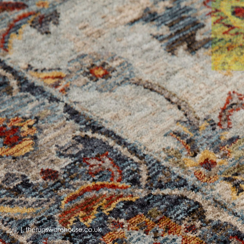 Multi-Coloured with Cream & Blue as Main Colours.