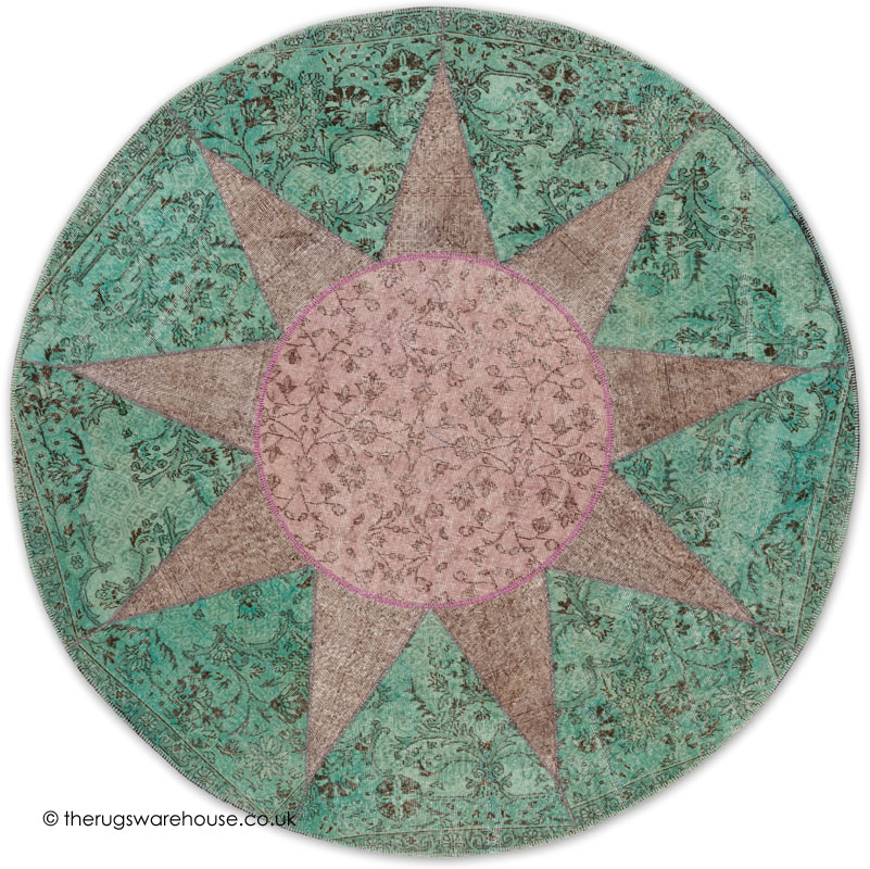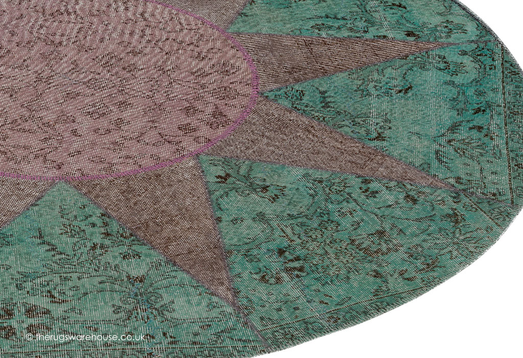 This item is part of the Giotto Star Rugs collection, which is a range of hand-knotted pure wool patchwork round rugs. The rugs are kelim-like; very thin with no pile made by assembling parts of old re-coloured original Turkish carpets, in addition the rugs are hand-stitched using prominent thick wool threads, which are applied horizontally and vertically across the surface. The stitching also gives the rugs the authentic look of original ancient patchwork rugs. Please note that due to the way the Giotto Star rugs made, there will be slight variations as each rug is unique.