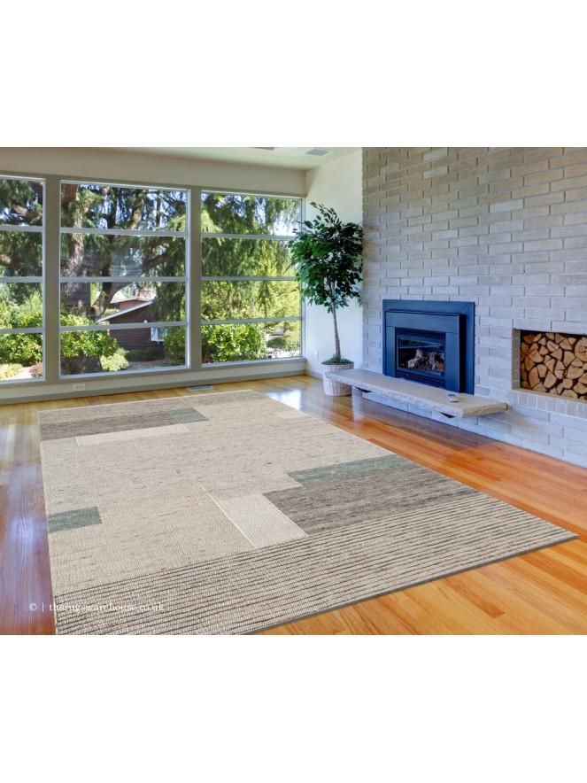 Tiko Blocks Ivory Teal Rug
