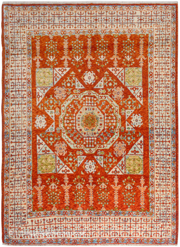 This item is part of the Rushba Rugs collection, which is a range of luxury handmade traditional wool carpets woven in Northern Afghanistan by Aimaq tribes. The collection features authentic Persian designs in a classic and elegant colour palette suitable for any room setting. In addition, the rugs feature twisted wool yarns, which are antique washed to soften the colours with the aim of producing that much sought-after antique look.