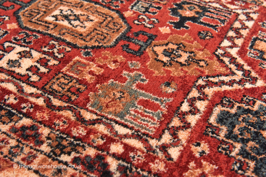 Terracotta & Red Background Mix with Beige Borders and a Multi-Coloured Design.