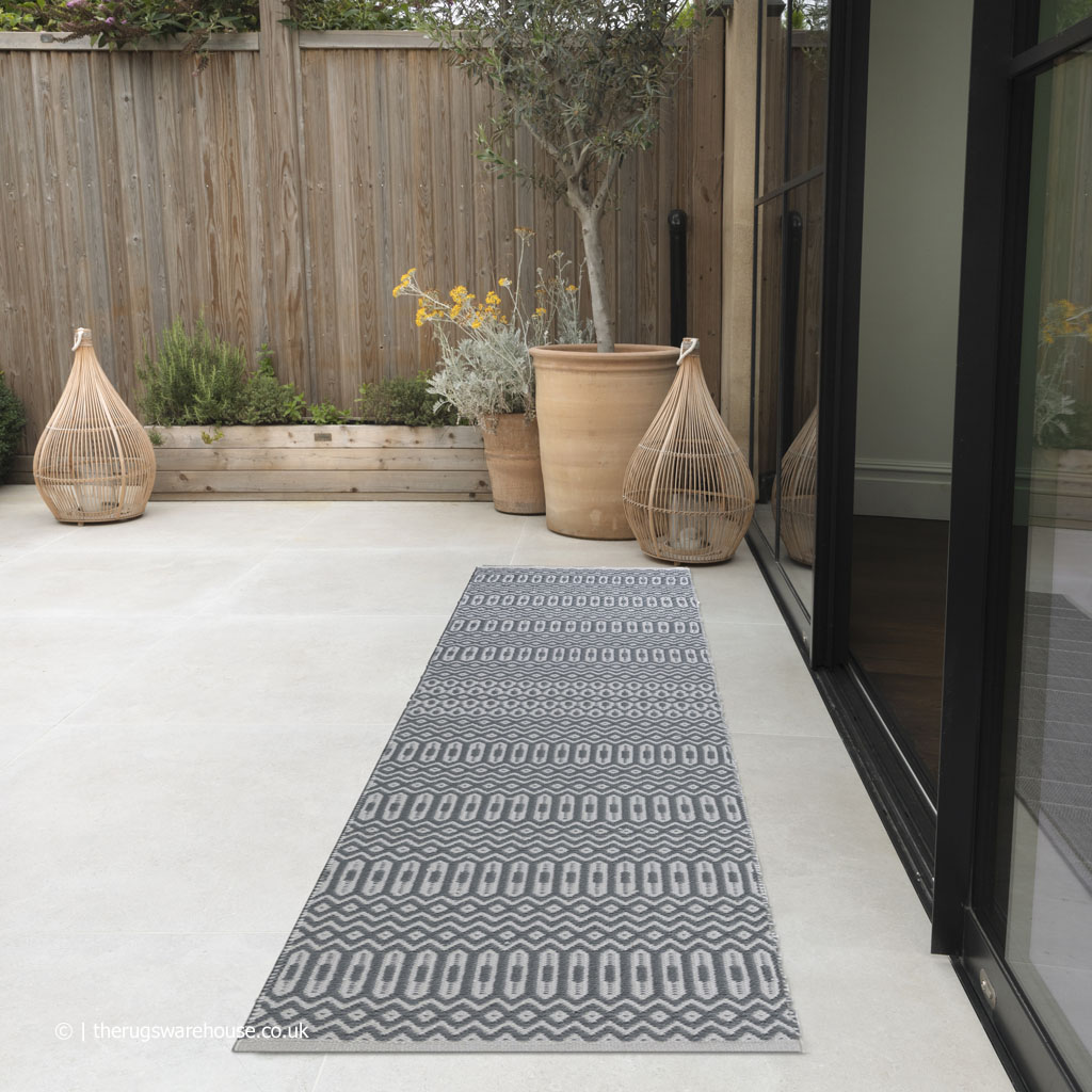 This item is part of the Halsey Runners collection, which is a range of contemporary geometric indoor/outdoor flat-woven hallway rugs. Woven by hand from UV yarns made from recycled plastic bottles, runners in this collection feature a looped pile. This collection is available in a selection of sizes and colours. In addition, the rugs are practicality enhanced by the fact that they are reversible have a soft wool like touch, and would work in any living and outdoor space.
