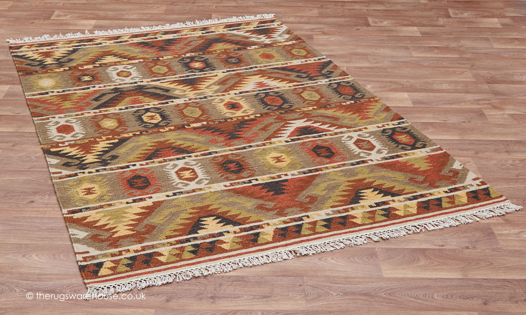 This item is part of the Kelims Rugs collection, which is a range of flat-woven wool tribal carpets. As you might expect from the flat-woven technique of construction, the rugs are very thin kelims, and as they are made of dense wool, they have an authentic and luxurious look. All the rugs in this collection feature antique fringes, which add that extra genuine tribal look. Furthermore, the rugs feature old world tribal designs that never go out of fashion.