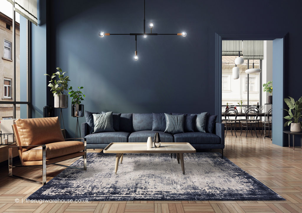 Kuza Border Navy Rug