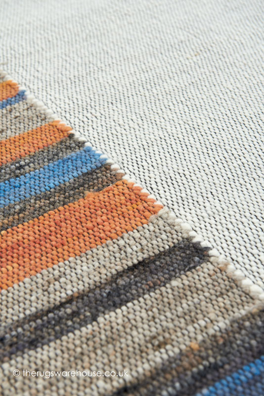 This item is part of the Africa Design Rugs collection, which is a range of flat-woven luxury pure new wool carpets inspired by the earthy colours of the African plains. The rugs, skillfully hand-woven in Morocco, feature a predominantly earthy colour palette that is energised by dashes of colour through use of contrasting stitching, framing, stripes and segmentation design structuring. Such weaving techniques result in reversible pebble like textured carpets that have a pleasing understated chic appearance and a comfortable underfoot feel.