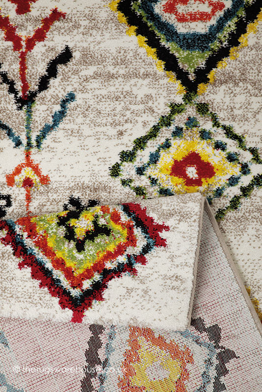 Ivory Background with Multi-Coloured Design.