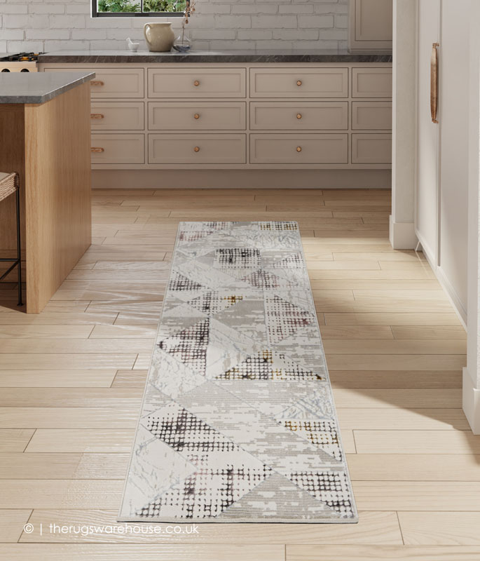 This item is part of the Glitz Runners collection, which is a new and very novel range of modern machine-woven hallway carpets. The collection has a distinguishing two-looks feature where each runner’s appearance becomes very different with regards to colour depending on the side it is viewed from. This feature owes its nature to the exceptional design, colour palette, and carving techniques, which effectively give two different looks to the same piece. The Glitz Runners also feel very soft to the touch.