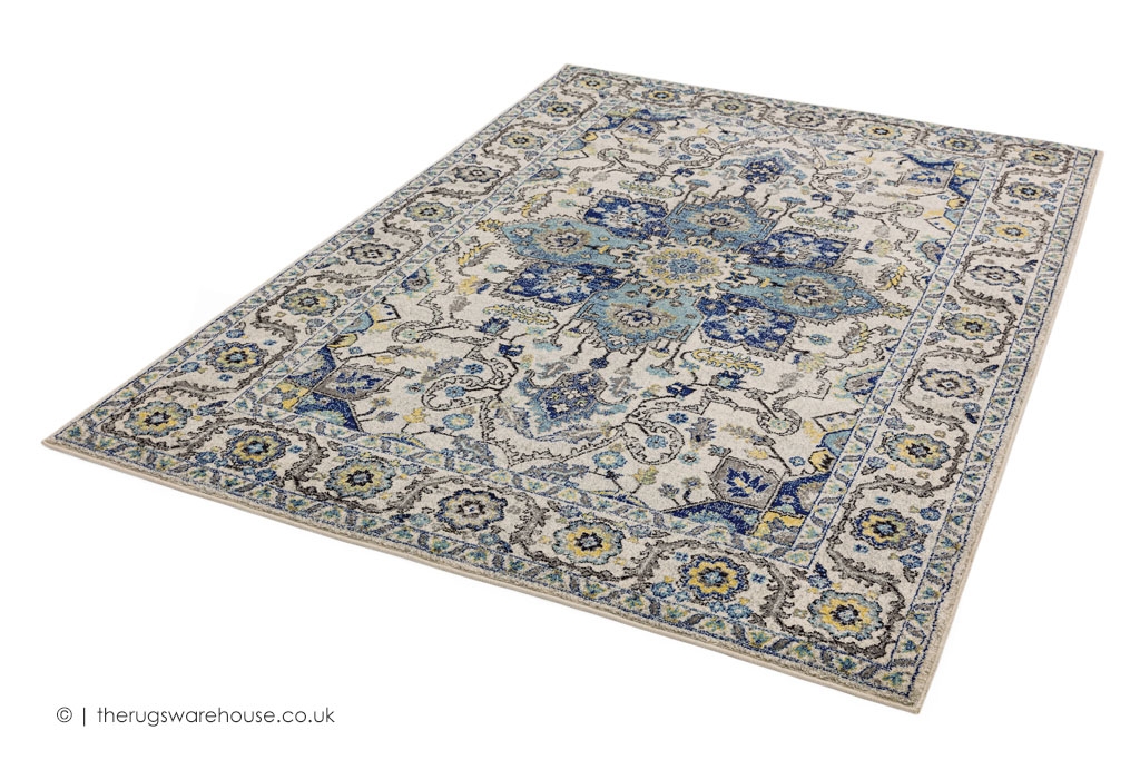 Blue, Cream, Yellow & Grey.