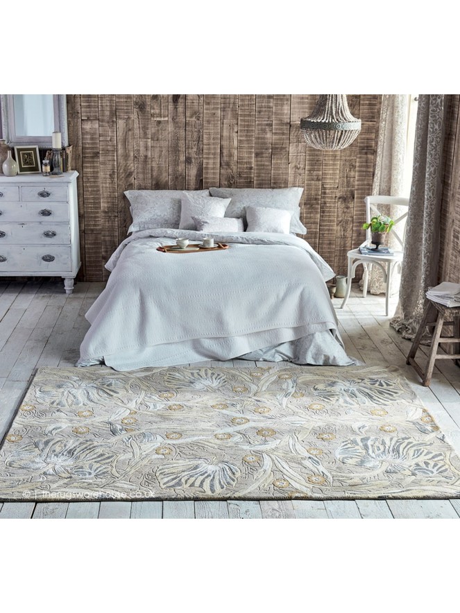 The item is part of the Morris & Co. Rugs collection, which is a range of designer luxury hand-tufted carpets. Posthumously named after the artist and philosopher William Morris, these rugs are recreations of his intricate timeless designs. These rugs are made of pure new wool that will feel soft to the touch and will be comfortable underfoot.
