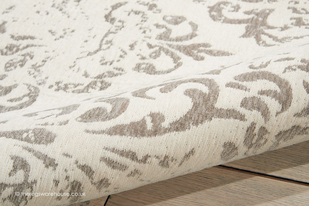 This item is part of the Damask Rugs collection, which is a range of hand-woven polyester chenille carpets. Flat-woven using a blend of polyester, cotton, and rayon, the rugs are very soft to the touch and are highly textured. In addition, the rugs feature elegant damask designs in soft colours, which makes them suitable for any modern setting.