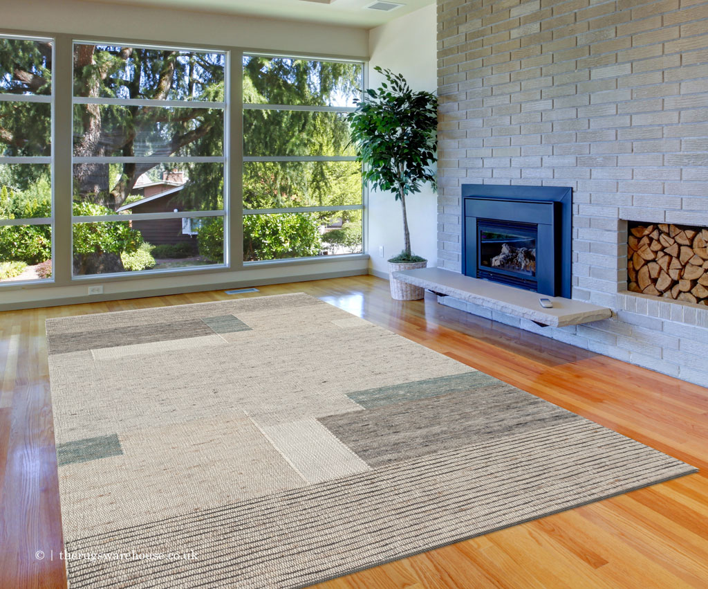 Tiko Blocks Ivory Teal Rug