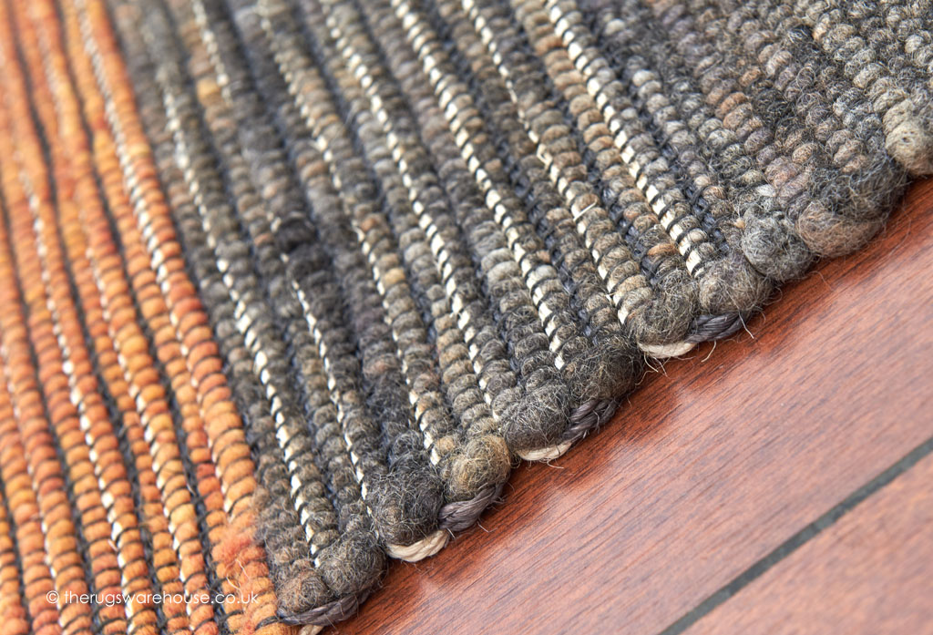 This item is part of the Africa Design Rugs collection, which is a range of flat-woven luxury pure new wool carpets inspired by the earthy colours of the African plains. The rugs, skillfully hand-woven in Morocco, feature a predominantly earthy colour palette that is energised by dashes of colour through use of contrasting stitching, framing, stripes and segmentation design structuring. Such weaving techniques result in reversible pebble like textured carpets that have a pleasing understated chic appearance and a comfortable underfoot feel.