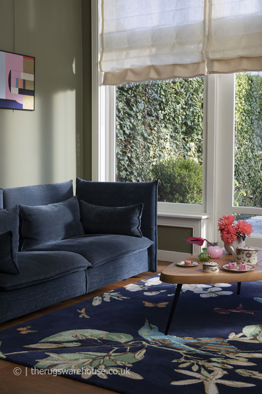 Hummingbird Navy Rug